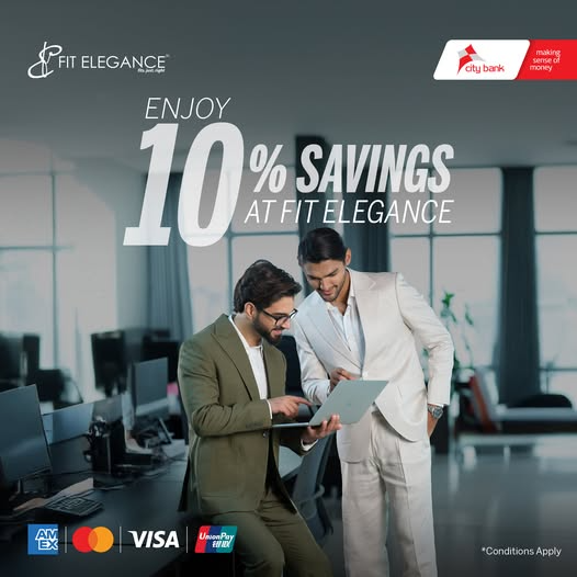Level up your wardrobe with Fit Elegance and enjoy 10% savings on all products when you pay using your City Bank Cards. Discover stylish essentials designed to elevate your everyday look while making every purchase more rewarding.