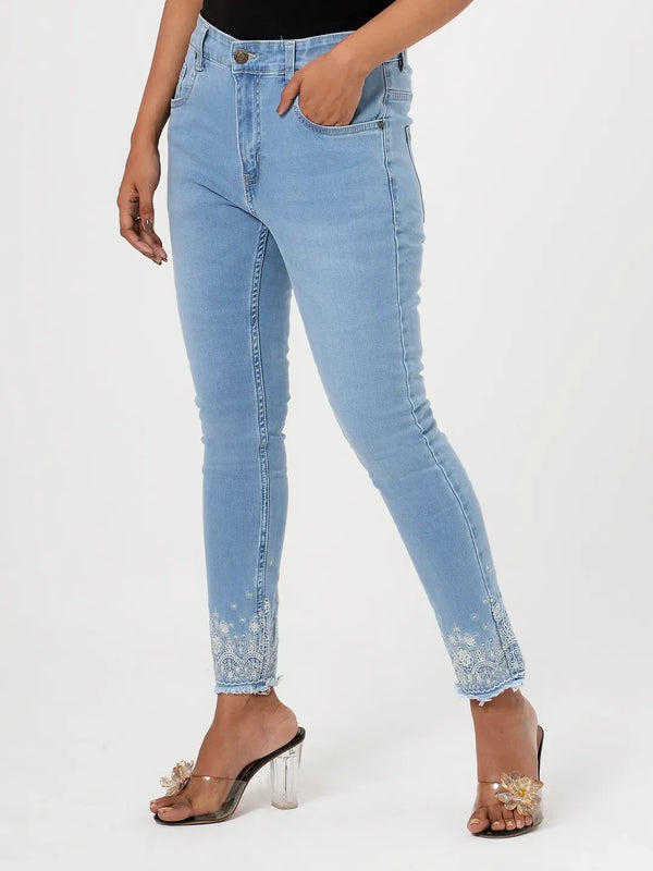 Klothen Women Denim Long Pant