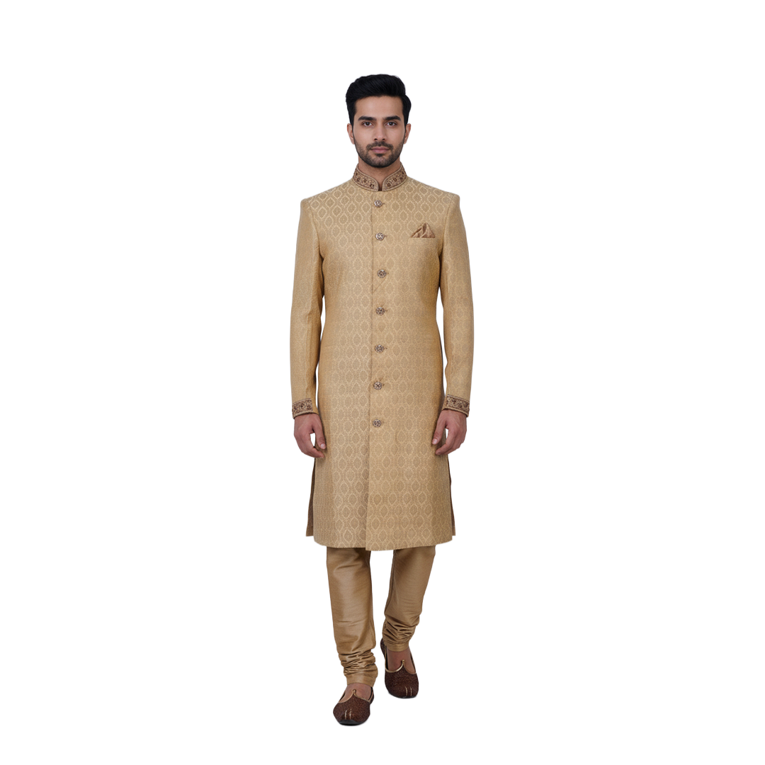 |NFINITY Lubnan Mens Golden Color Premium Bridal Sherwani with Pajama