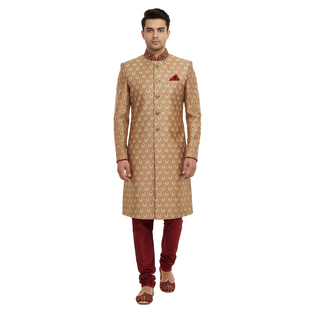 INFINITY Lubnan Men’s Premium Bridal Sherwani with Pajama is designed for grooms who want a majestic and elegant wedding look. Crafted from premium-quality fabric, this outfit features a rich golden color that enhances its royal appeal. Paired with a perfectly matched pajama, it ensures both comfort and sophistication. Ideal for weddings and grand celebrations, this bridal sherwani is now available with an exclusive 50% discount, making it a luxurious yet valuable addition to your ethnic collection.