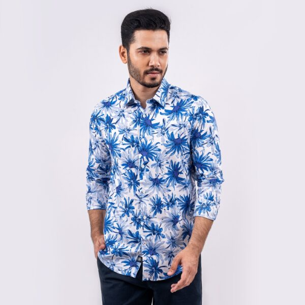 Richman Floral Blue Printed Ultra Slim Fit Business Casual Shirt